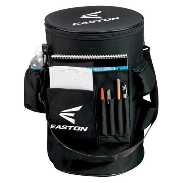 Features a soft cushion top, pockets for pens, scorebook/line-up card, zippered valuables and a sport bottle. Separate mesh pocket holds three game balls.
