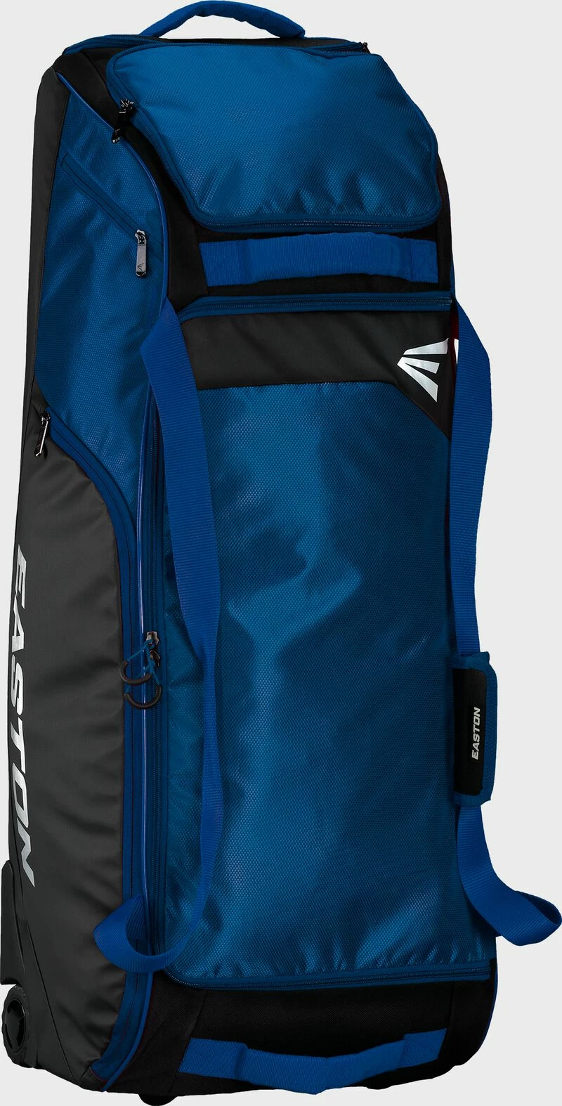 The new Easton Dugout Wheeled Bag is adurable equipment wheeled bag perfect for any player and theirgear. Ahard one-piece molded base providesstability and durabilityto the bottom of the bag. Thepadded bat compartment that can store and protect up to 5 bats, and an oversized large-mouth opening with YKK zippers provideseasy access into themainbagcompartment. Rollup to games or practicesthrough any terrain with the rugged inline wheels of the Dugout Wheeled bag.