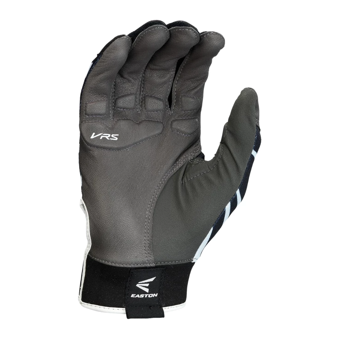 Easton’s Gametime VRS batting gloves feature a VRS palm pad for reduced vibration and blisters. These gloves feature a smooth goatskin palm and sublimated flexible four-way-stretch mesh back. A comfortable neoprene cuff offers durable and breathable support..
