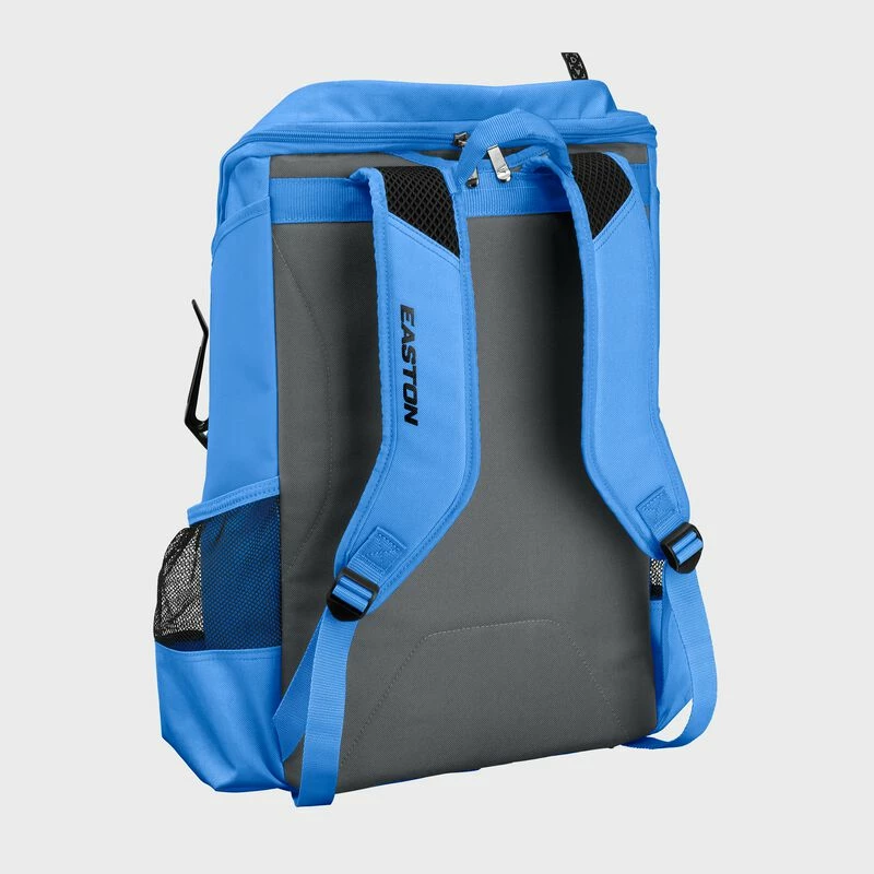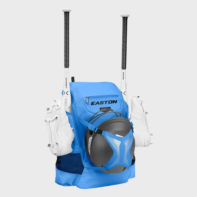 The Easton Ghost NX fastpitch backpack is essential for softball players looking to carry their gear to games and practices in style. Featuring an extra-wide main compartment with large zippers, this backpack is durable and has more than enough room for your equipment. The exterior of the bag has a metallic-printed helmet holder, allowing for more space inside and additional dry time for your helmet. Patent pending Gear Klips on the sides are perfect for holding a pair of cleats, ball gloves, batting gloves, or other gear. In addition, the NX backpack has 2 full-length bat sleeves to protect them during travel. The expandable mesh pockets on the side accommodate oversized water bottles while the front personal pocket keeps valuables within reach, but out of sight. Female-specific padded back and shoulder straps make carrying this backpack a comfortable experience. When you reach the dugout, the tuck-away fence hook allows you to hang your bag off the ground and at arms reach.