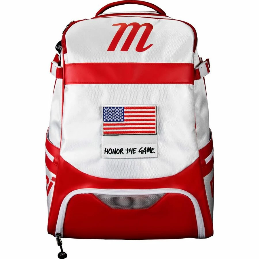 Carry all your gear easily with the all-new Marucci Dynamo Baseball Equipment Backpack. The Dynamo Bat Pack is designed to keep your gear organized, perfect for travel, game day, or school. Each Dynamo Bat Pack comes standard with Honor the Game and USA Flag removable patches and can easily be personalized with additional Marucci patches. The side bat holders provide secure protection for up to four bats with 2 3/4″ barrels. In addition, the Dynamo showcases a fleece-lined side zipper laptop sleeve, a fleece-lined top drop pocket for safe storage for valuables, and a fleece-lined sunglass case that protects against scratches and breakage. A molded fence hook allows you to hang your bag for easy in-game access, while the ventilated cleat compartment helps keep your gear protected from unwanted odors or filth. Make your move with the Marucci Dynamo Baseball Equipment Backpack