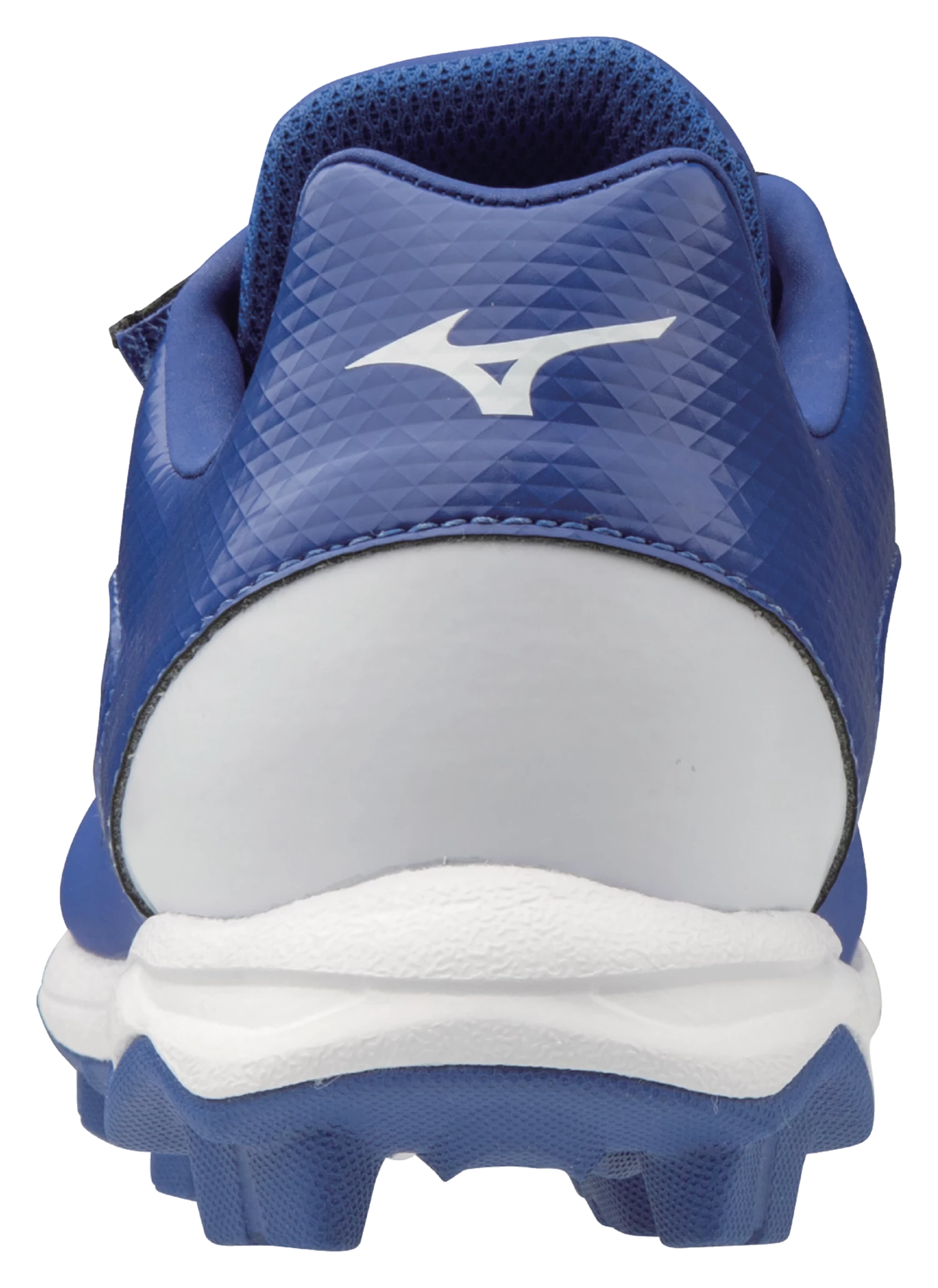 The Mizuno Select Nine JR is a top rubber molded youth cleat option suitable for all field types, while offering an EVA midsole for enhanced comfort and durability. Also features Mizuno Wave technology to reduce pressure, while adding comfort and stability during athletic movements around the diamond. Features one Velcro strap and faux laces add a convenience detail to do away with between-inning shoe tying!